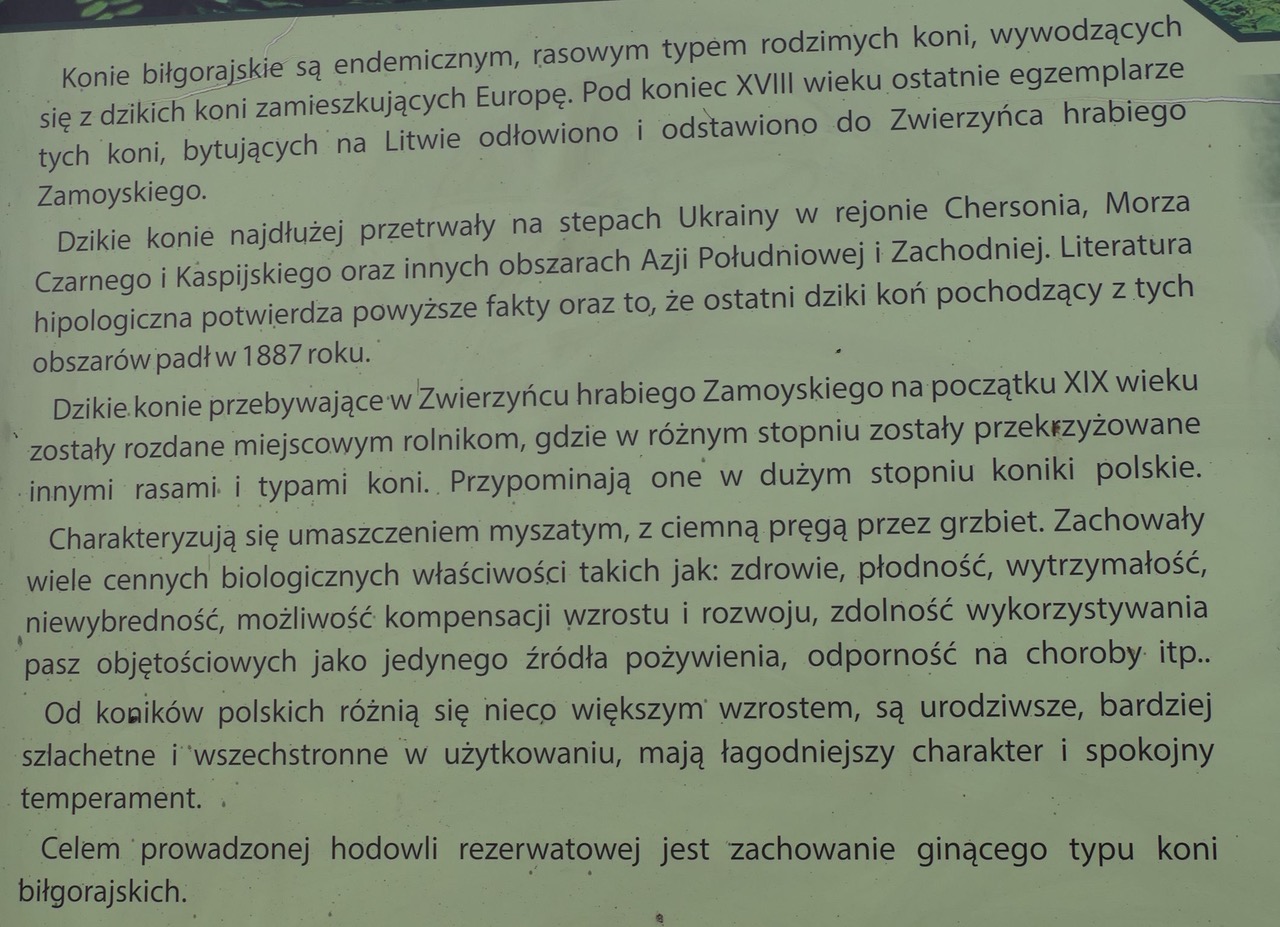 iejsce hodowli unikatowego konika biłgorajskiego, gdzie można tę rasę podziwiać szczególnie od wiosny do późnej jesieni. Koniki biłgorajskie charakteryzują się myszatą maścią i charakterystyczną pręgą wzdłuż grzbietu i niekiedy na kończynach. Są wytrzymałe, płodne i odporne na choroby. Nie są też płochliwe, a nawet uznawane są za towarzyskie.