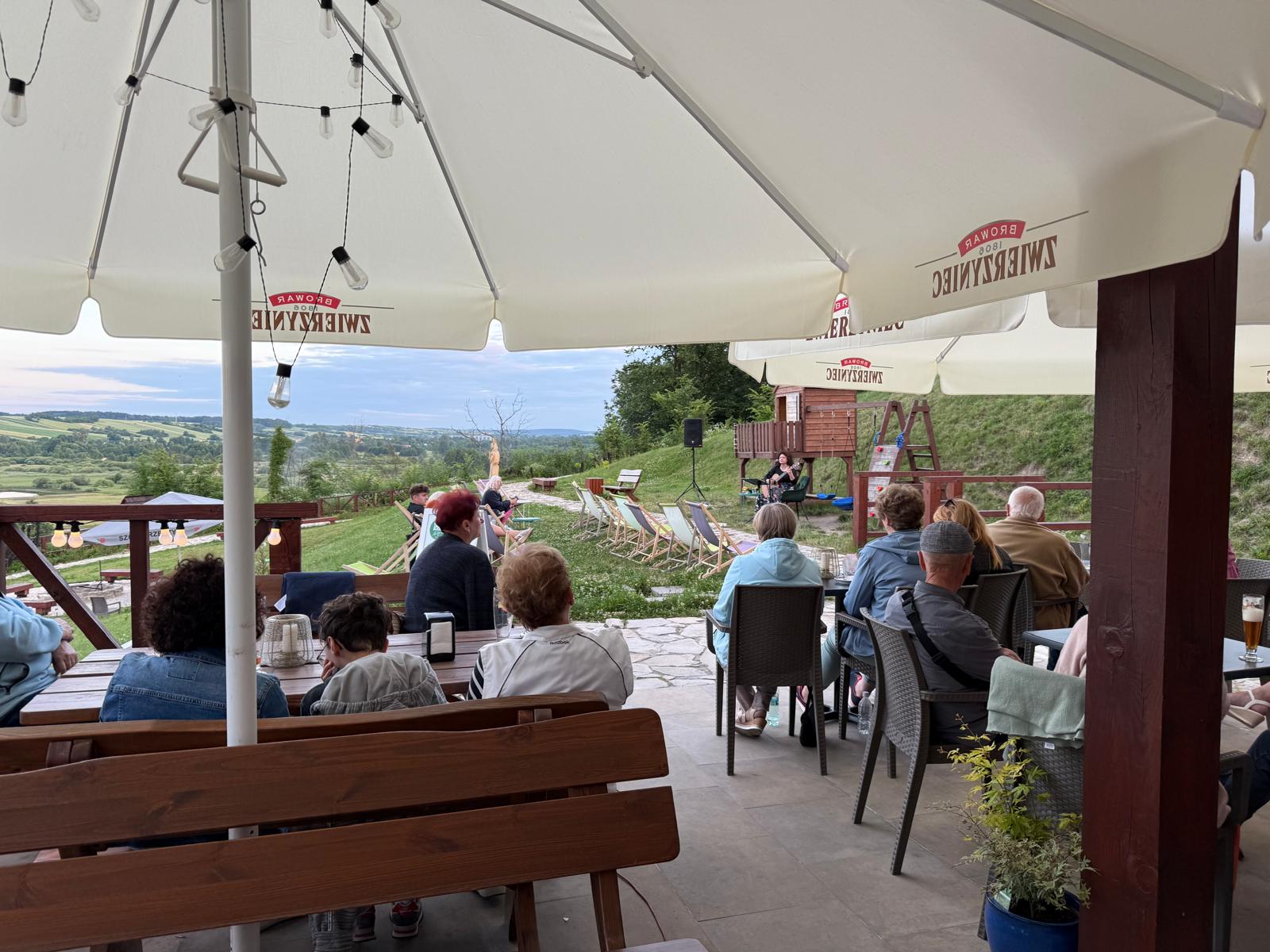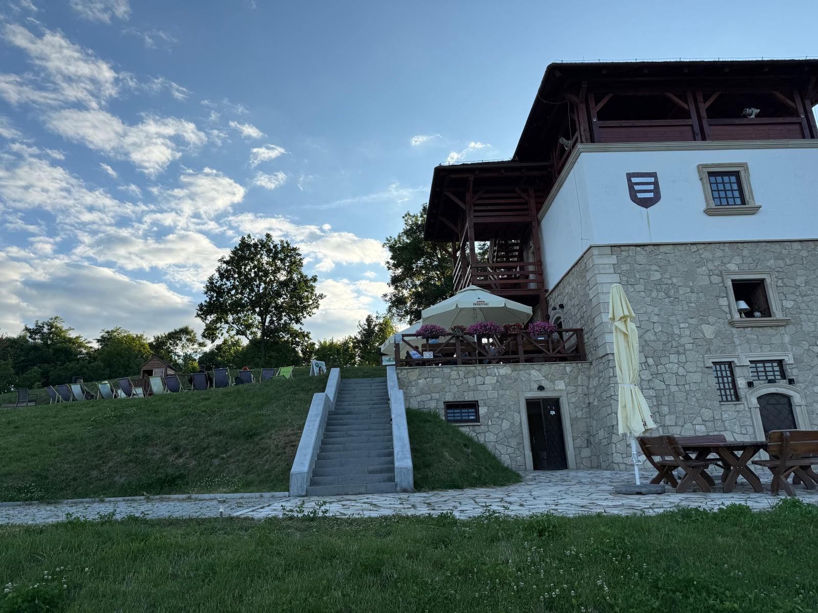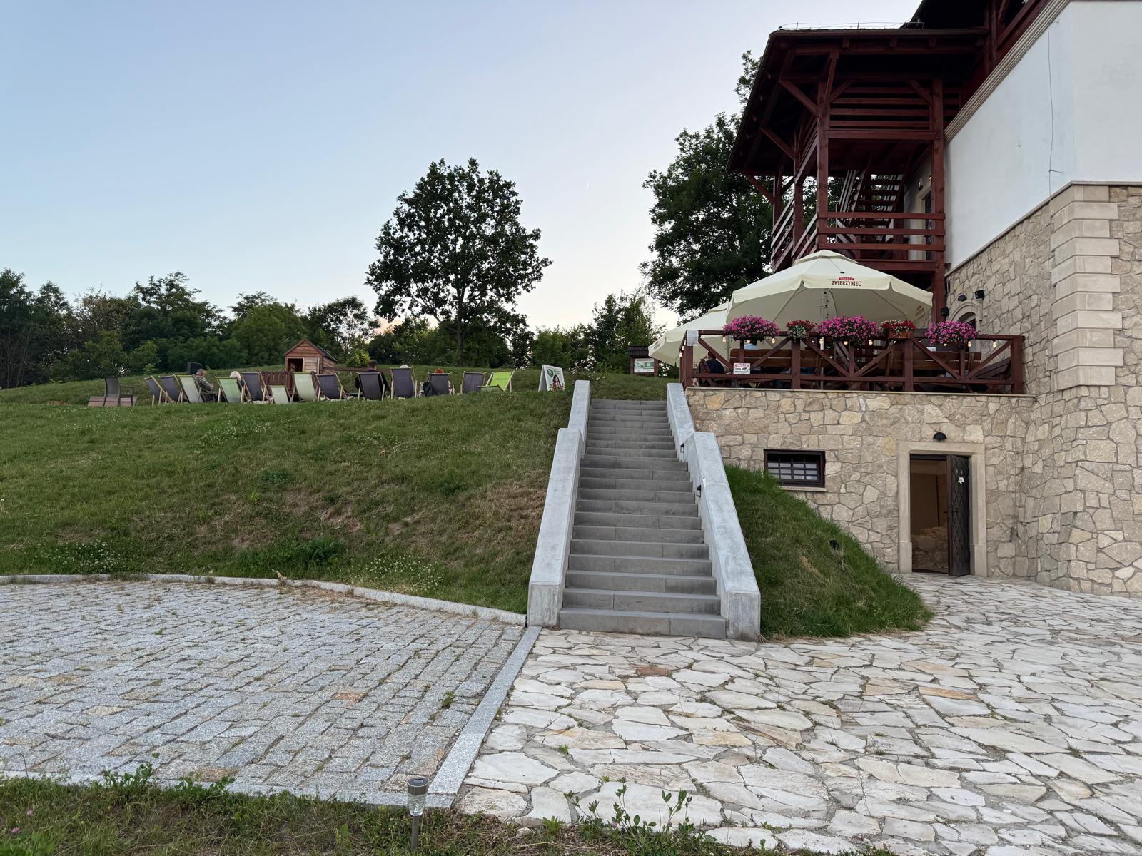 Od centrum miasta dzieli ją zaledwie kilkuminutowy spacer, a po dojściu na miejsce czeka na gości spokojna, zadbana przestrzeń z tarasem i miejscami do odpoczynku — zarówno przy stolikach, jak i na wygodnych leżakach.