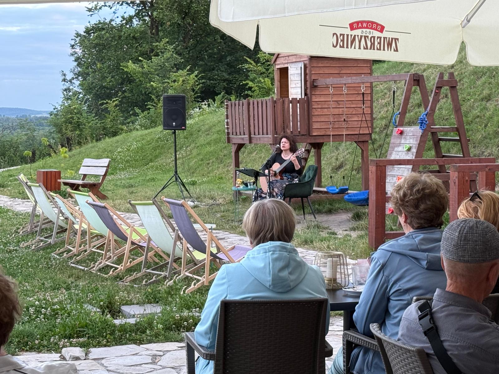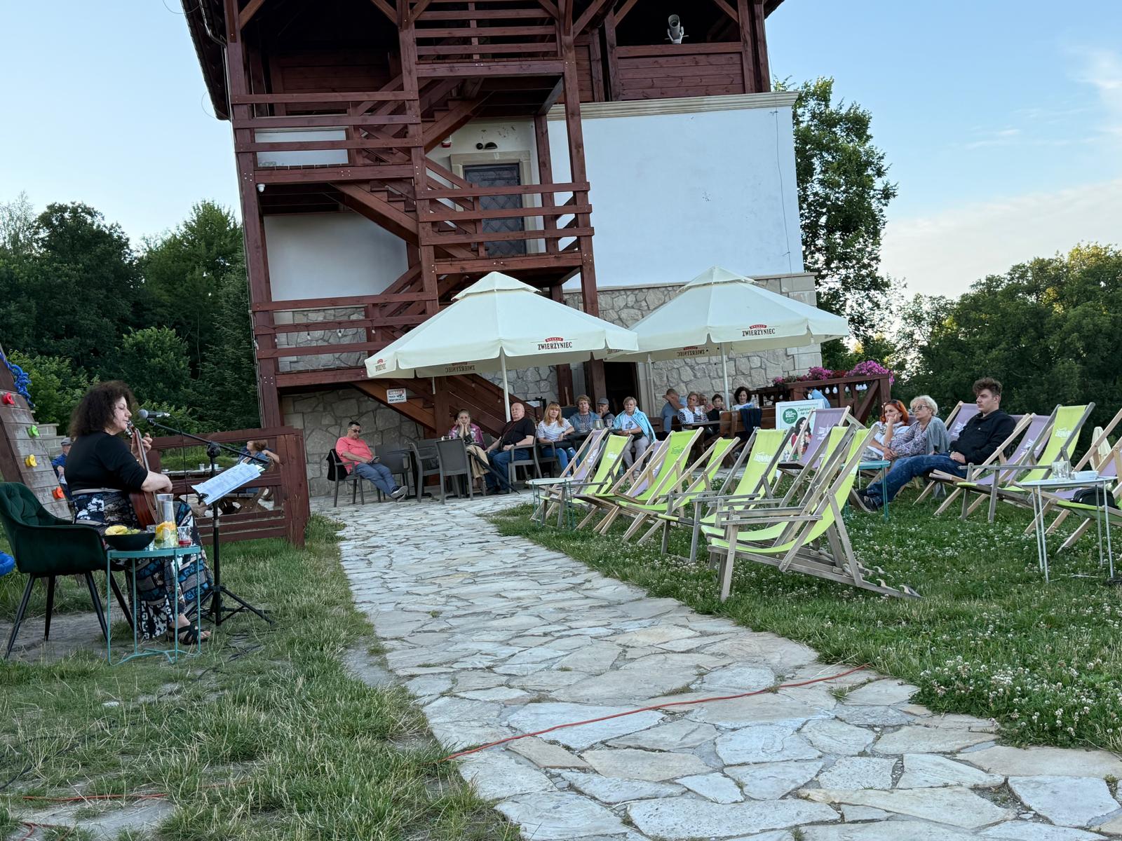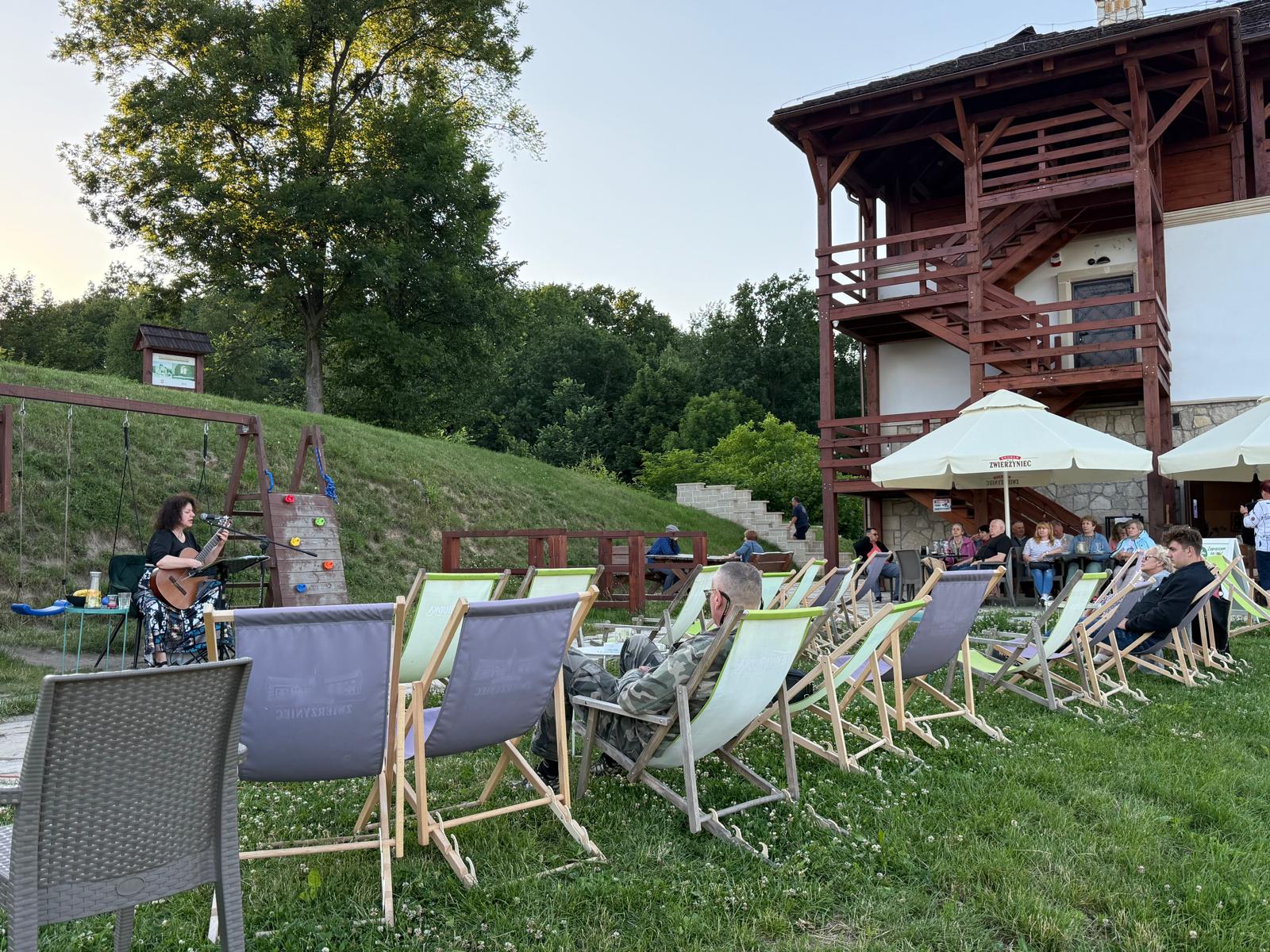 Od centrum miasta dzieli ją zaledwie kilkuminutowy spacer, a po dojściu na miejsce czeka na gości spokojna, zadbana przestrzeń z tarasem i miejscami do odpoczynku — zarówno przy stolikach, jak i na wygodnych leżakach.