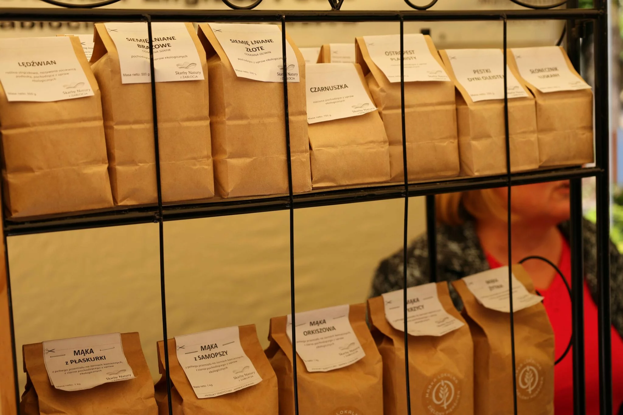 pieczywo, miody, wina, piwo rzemieślnicze, wędliny, oleje tłoczone na zimno, świeże owoce i warzywa, ciepłe potrawy, ciasta, przetwory owocowe i warzywne, wyroby z płatków i owoców róży, mąki, kasze.