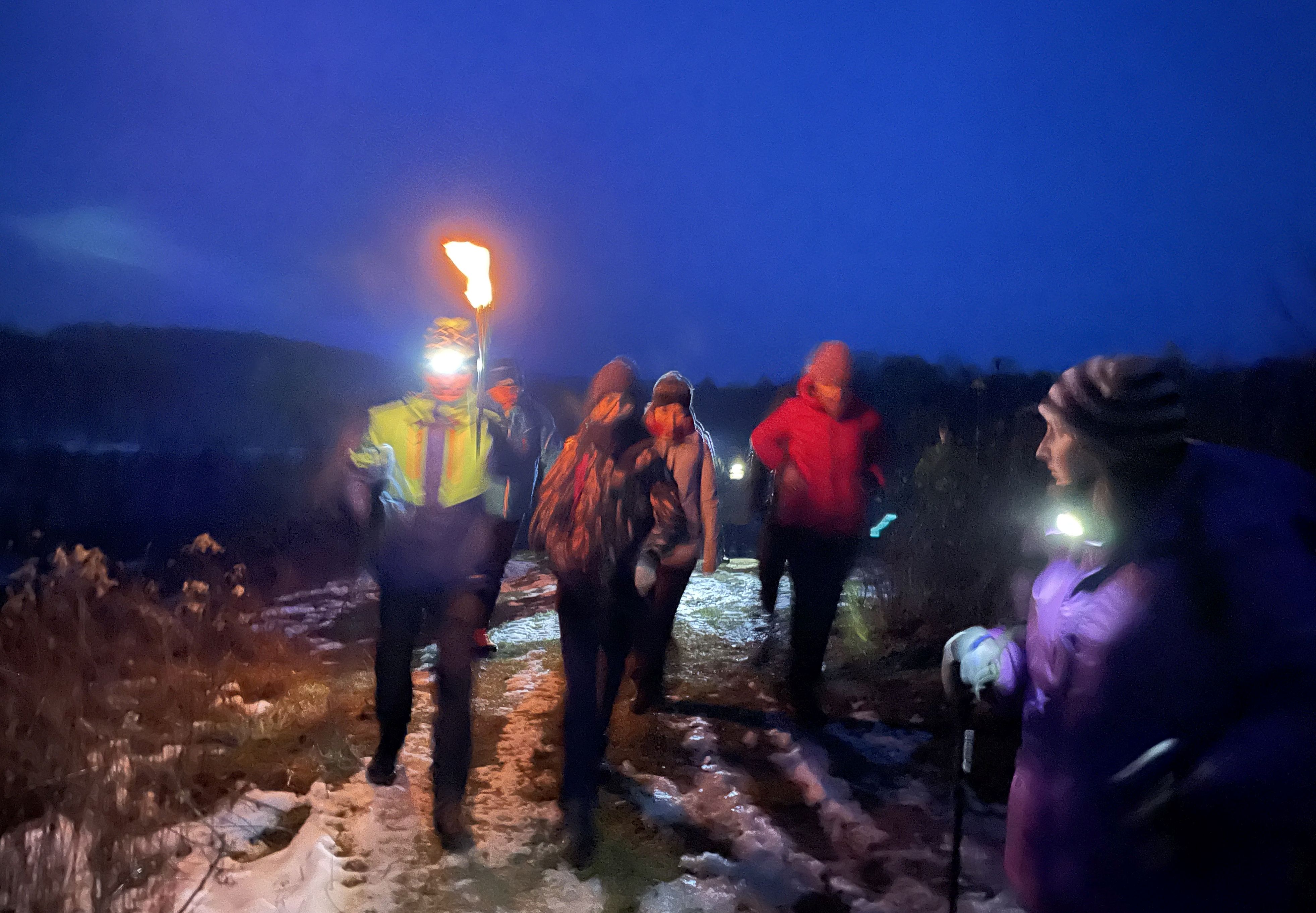 „Niesieni miłością” uczestnicy okazjonalnego rajdu walentynkowego w Małych Bieszczadach spotkali się wczoraj o 16 przy OSP w Rzeczycy nieopodal Kazimierza Dolnego by wziąć udział w wyjątkowym rajdzie pieszym, tym razem … z pochodniami.