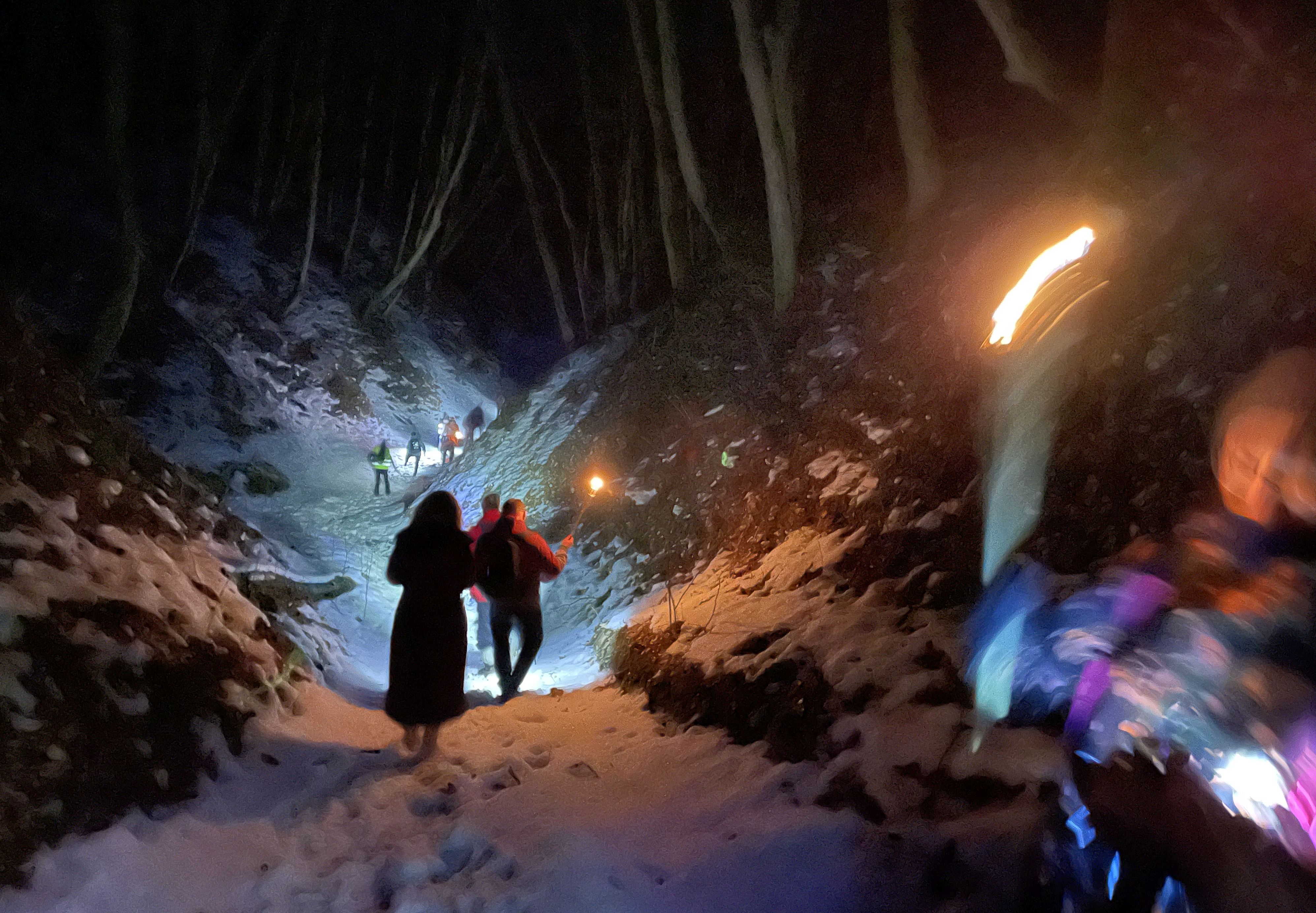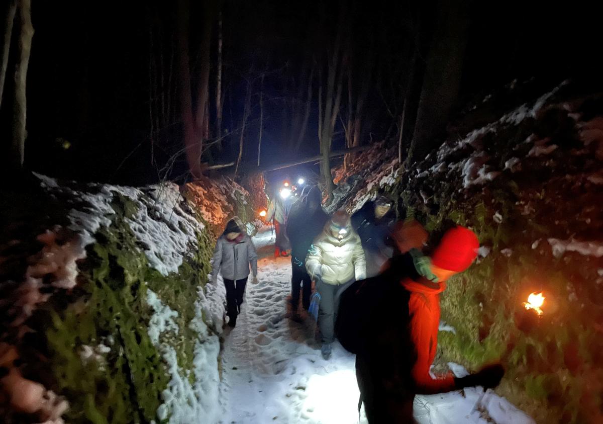 Widoki na szlaku, choć atrakcyjne, były widoczne jedynie przez pierwszą godzinę. Później trasę rozświetlały pochodnie, co też tworzyło szczególny klimat. Wtedy już szliśmy grupą przez wąwozy, co pozwalało rozświetlać całą pobliską przestrzeń. Był postój na Górze Trzech Krzyży w Witoszynie, skąd wąwozami udaliśmy się w drogę powrotną, gdzie na uczestników czekał pyszny poczęstunek przygotowany przez panie z Koła Gospodyń Wiejskich w Rzeczycy.