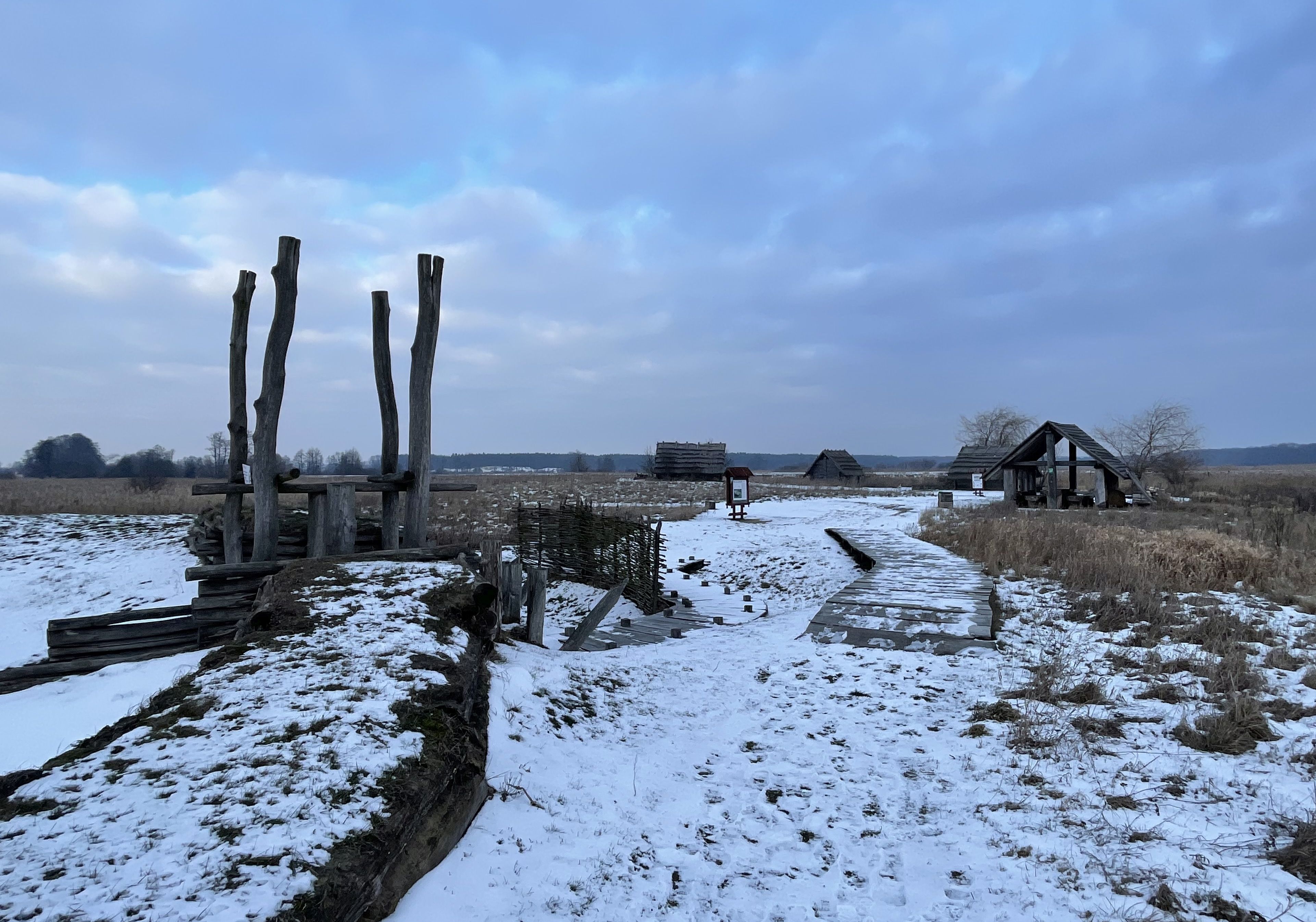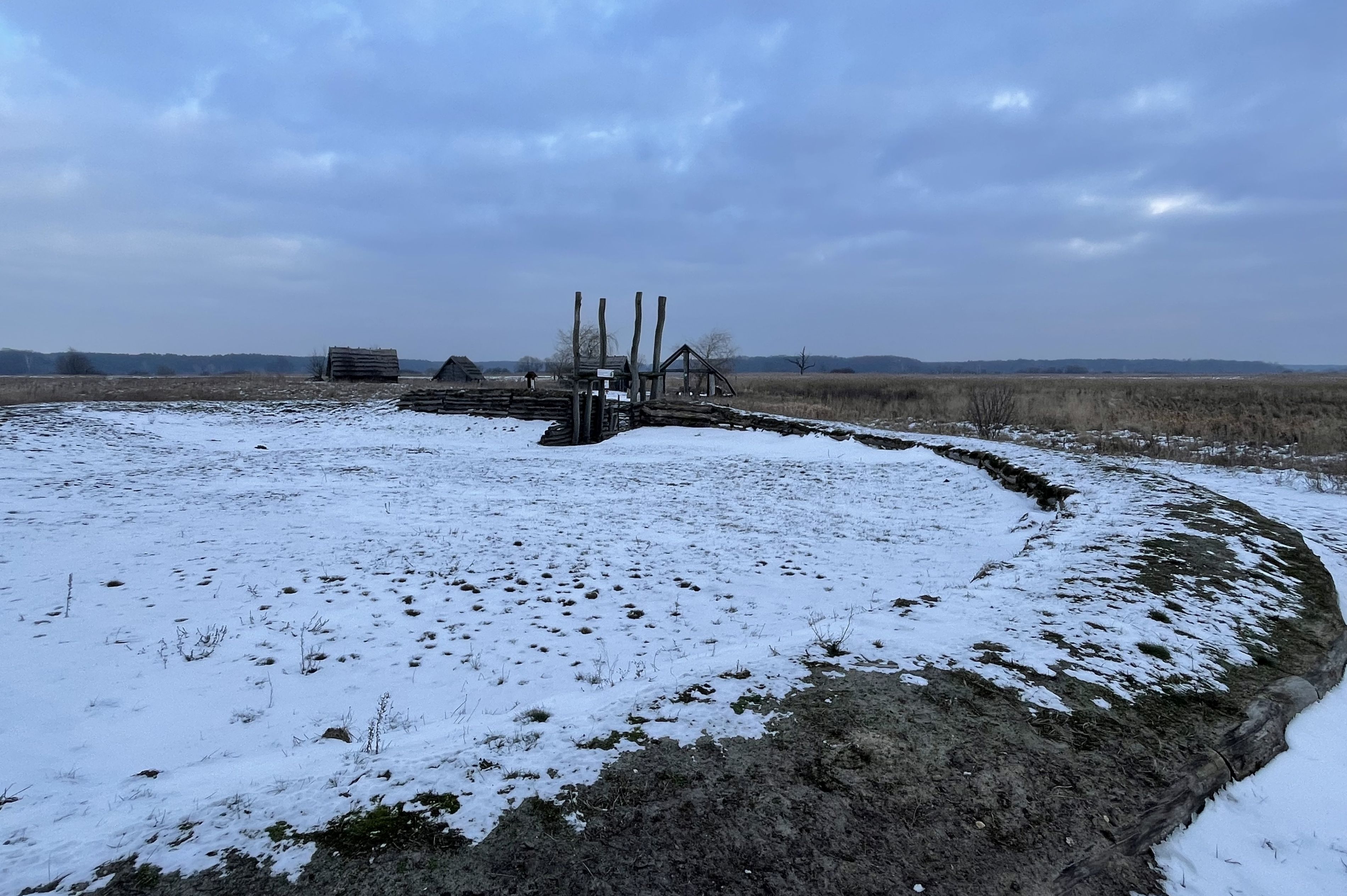 Badania archeologiczne dowodzą, że istniały tu dwie osady otoczone wałem ziemnym. Na nim znajduje się brama z izbicą nadbramną. Co ciekawe tzw. analiza dendrochronologiczna belek określiła bardzo dokładny wiek jej budowy, który miał mieć miejsce z 888 roku.