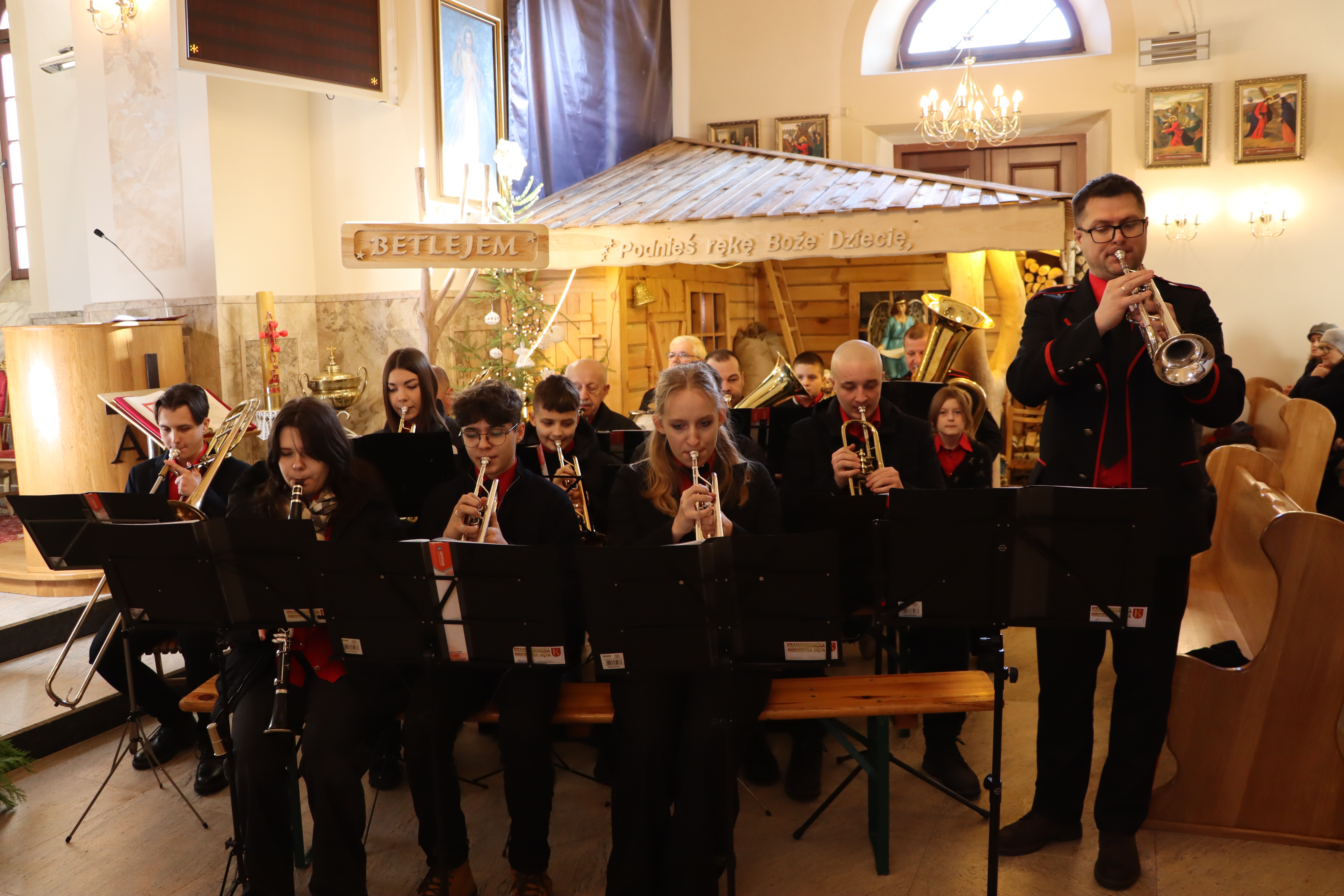 Krasnobrodzka Orkiestra Dęta zaprezentowała wiernym program kolędowy, który stał się nie tylko artystycznym widowiskiem, ale przede wszystkim głębokim przeżyciem duchowym.